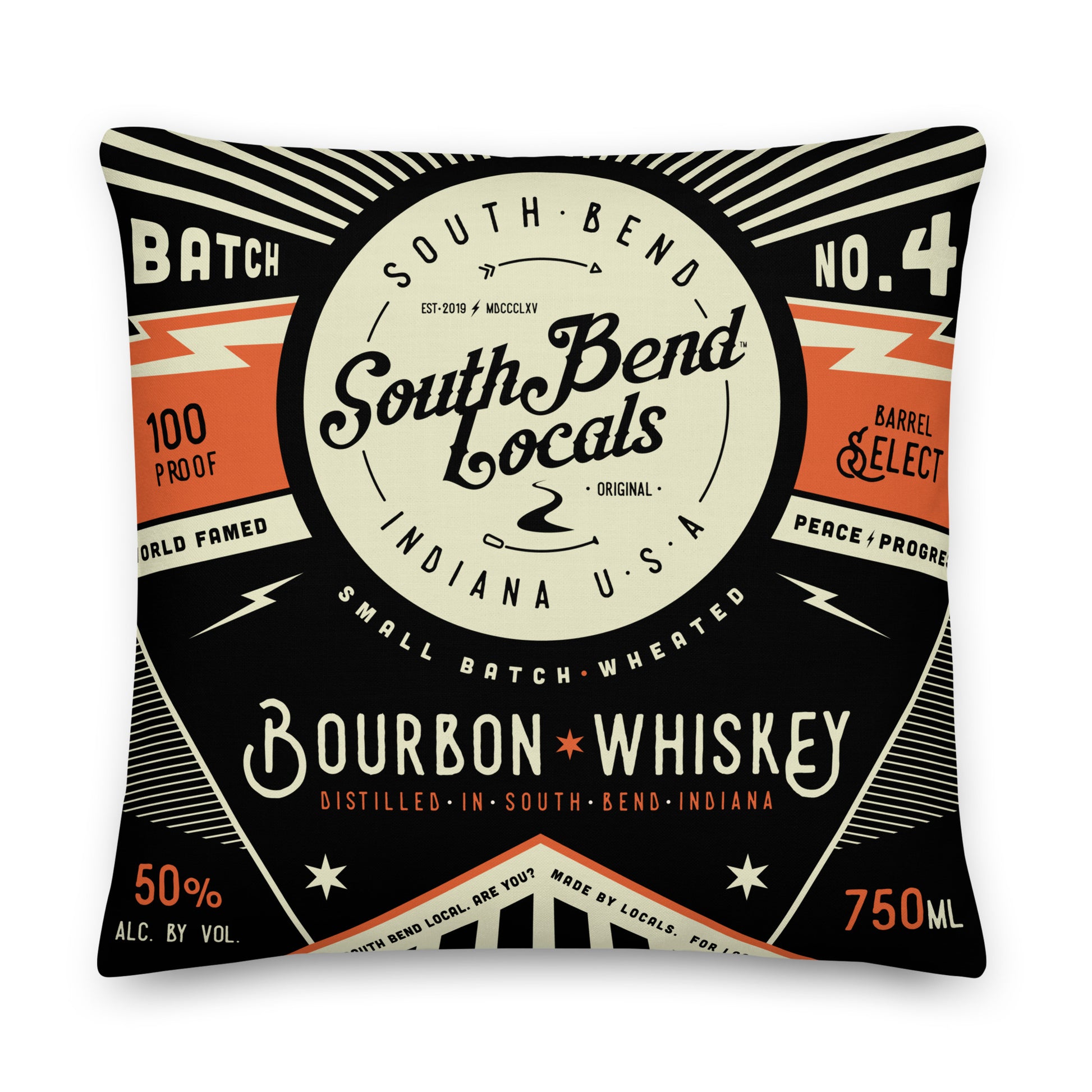 South Bend Locals Bourbon Label Pillow 22″×22″ – Aged to Perfection